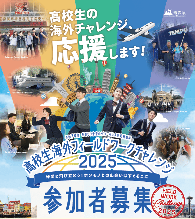青森県では、本県の近い将来を担う高校生の皆さんが、自ら企画した海外でのフィールドワークに係る経費の一部を支援します!