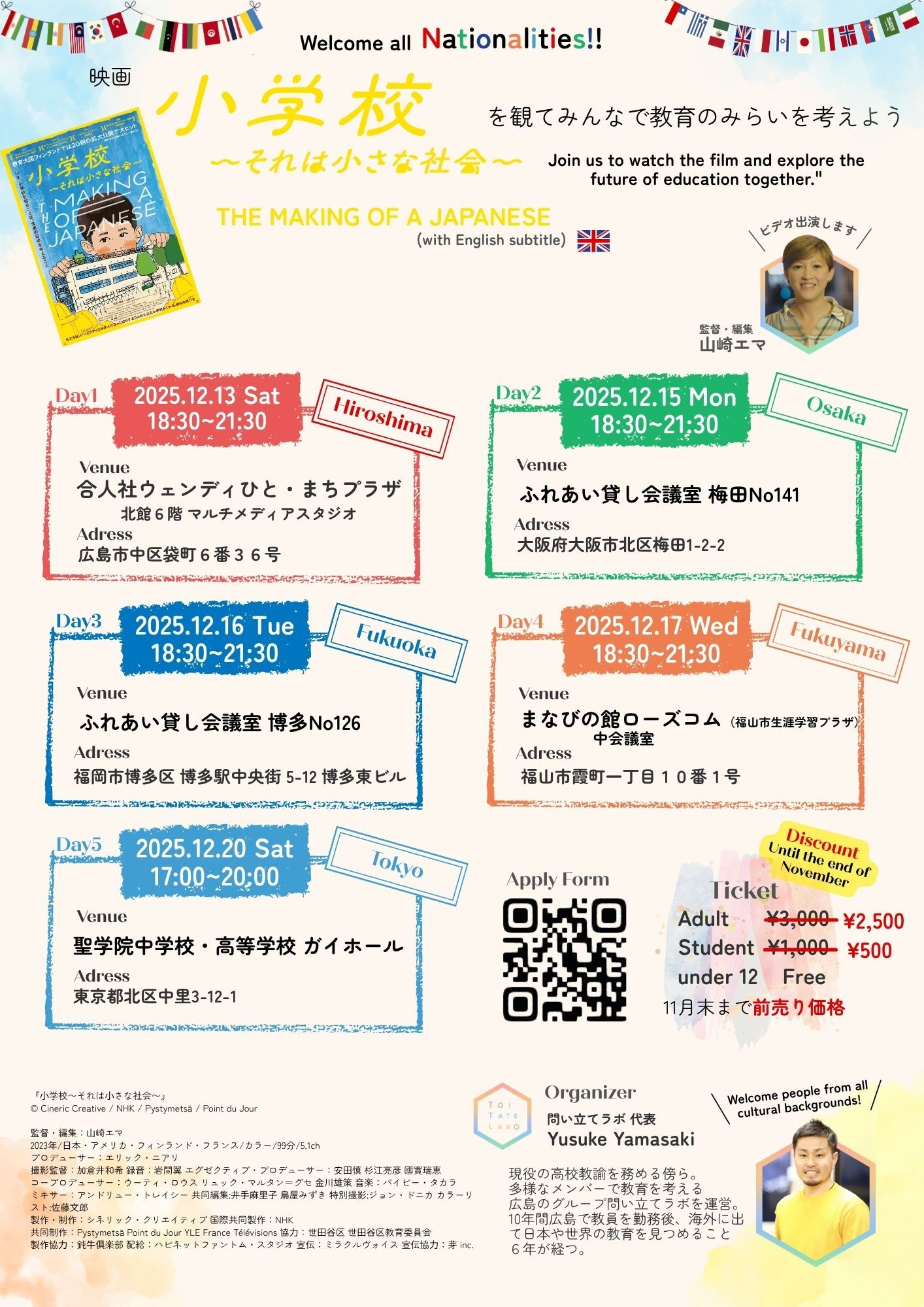 映画『小学校〜それは小さな社会〜』を観て、日本と海外の人たちと一緒に“教育”について語り合います。通訳付きだから英語が苦手でもOK!