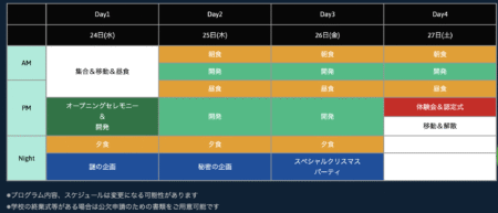 開発場所と宿泊場所が一緒なので、通常のキャンプより長い開発/制作時間の確保を実現!