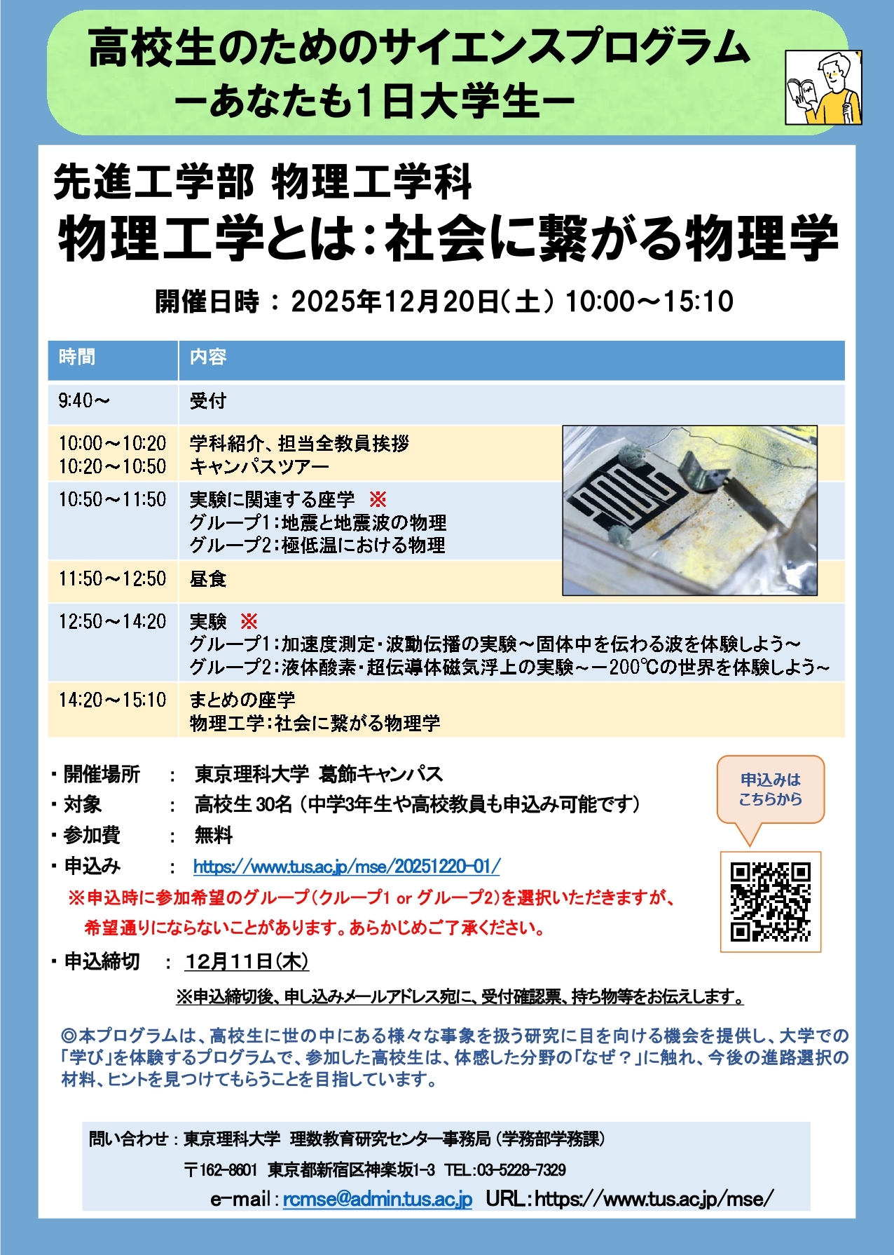 | 応募条件 | 高校生 30名 (中学3年生や高校教員も申込み可能です) |