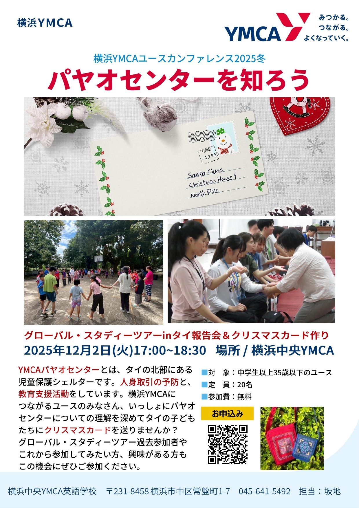 | 開催場所 | 横浜中央YMCA 〒231-8458 神奈川県横浜市中区常盤町1丁目7 |