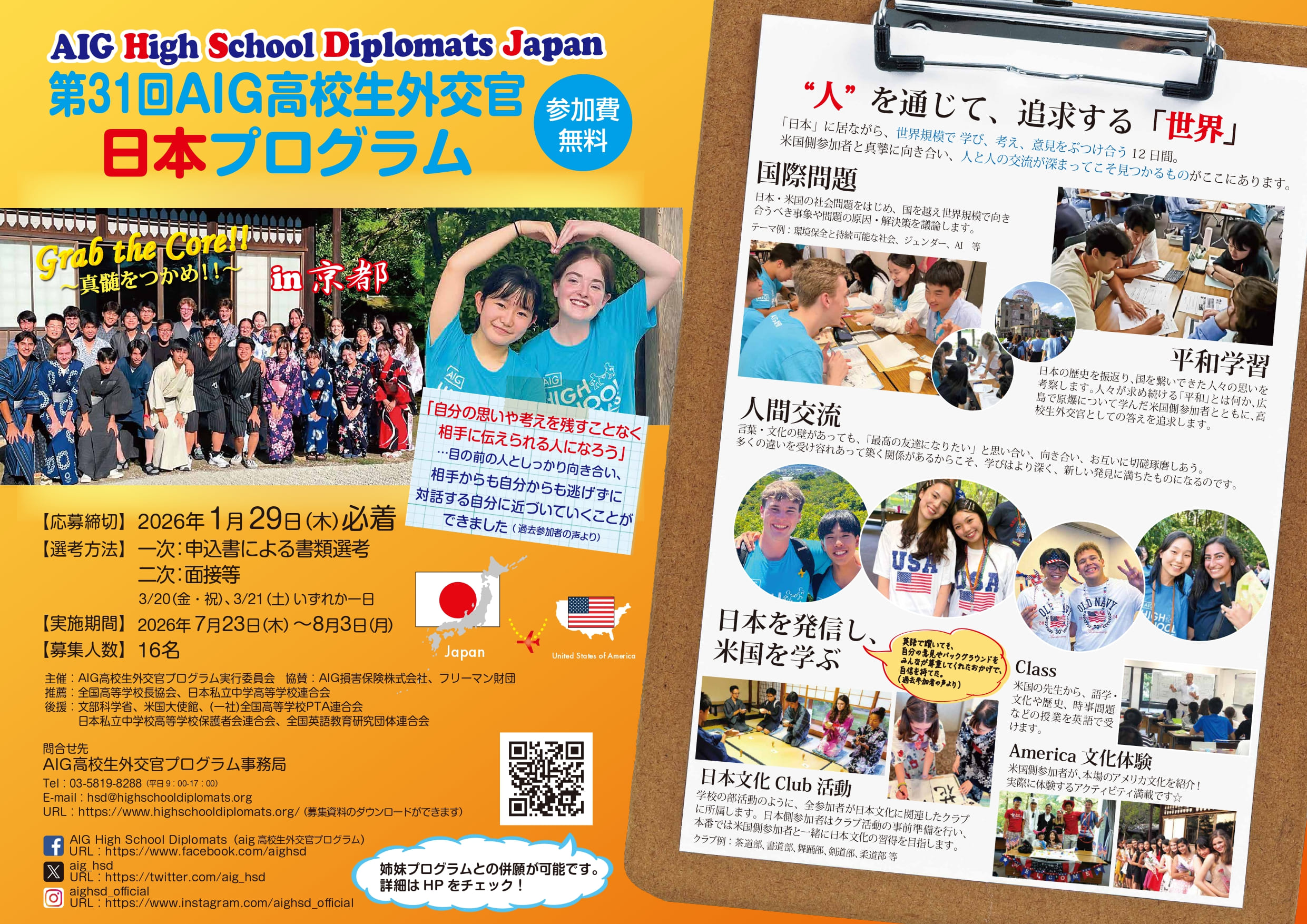 AIG高校生外交官日本プログラム(AIG High School Diplomats Japan Program / HSD Japan)は、来日した米国の高校生を、高校生外交官として受け入れます。
