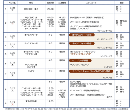 | 参加費 | 旅行代金:お一人様:990,000円(2名1室利用) ※詳細は別途ご案内いたします。 ※現地空港税、国際観光旅客税、国内空港施設使用料が含まれています。 ※燃油サーチャージは別途発生いたします。約60,000円 ホテル一人部屋を利用の場合の追加代金:68,000円(6泊分) ※基本的に2名1室となります。 |