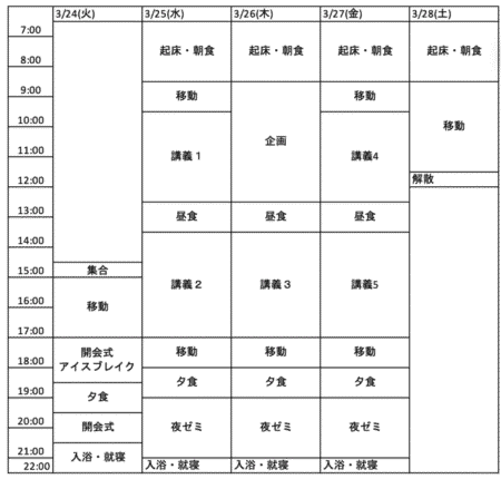 | 応募条件 | ・全日程参加可能であること。 ・高等学校およびそれに準ずる教育課程に在籍する生徒であること、または、中学校およびそれに準ずる教育課程に在籍する生徒で、前者と同等の学力を有すること。もしくはそれらに相当する年齢であり、前者と同等の学力を有すること。 応募時点で中学1年生から高校2年生相当までとします。 |
