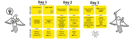 | 参加費 | 参加費:95,000円(税込) ※利用人数に上限あり・先着順 【含まれるもの】 ・教材費 ・食費(3月20日夕食〜3月22日昼食) ・宿泊費(3月20日〜3月22日の2泊分) ・事前研修費(任意参加) ・プレキャンプ交流会 (3/17(火)19:30~)※任意参加 ・オンライン同窓会(リユニオン)※任意参加 |