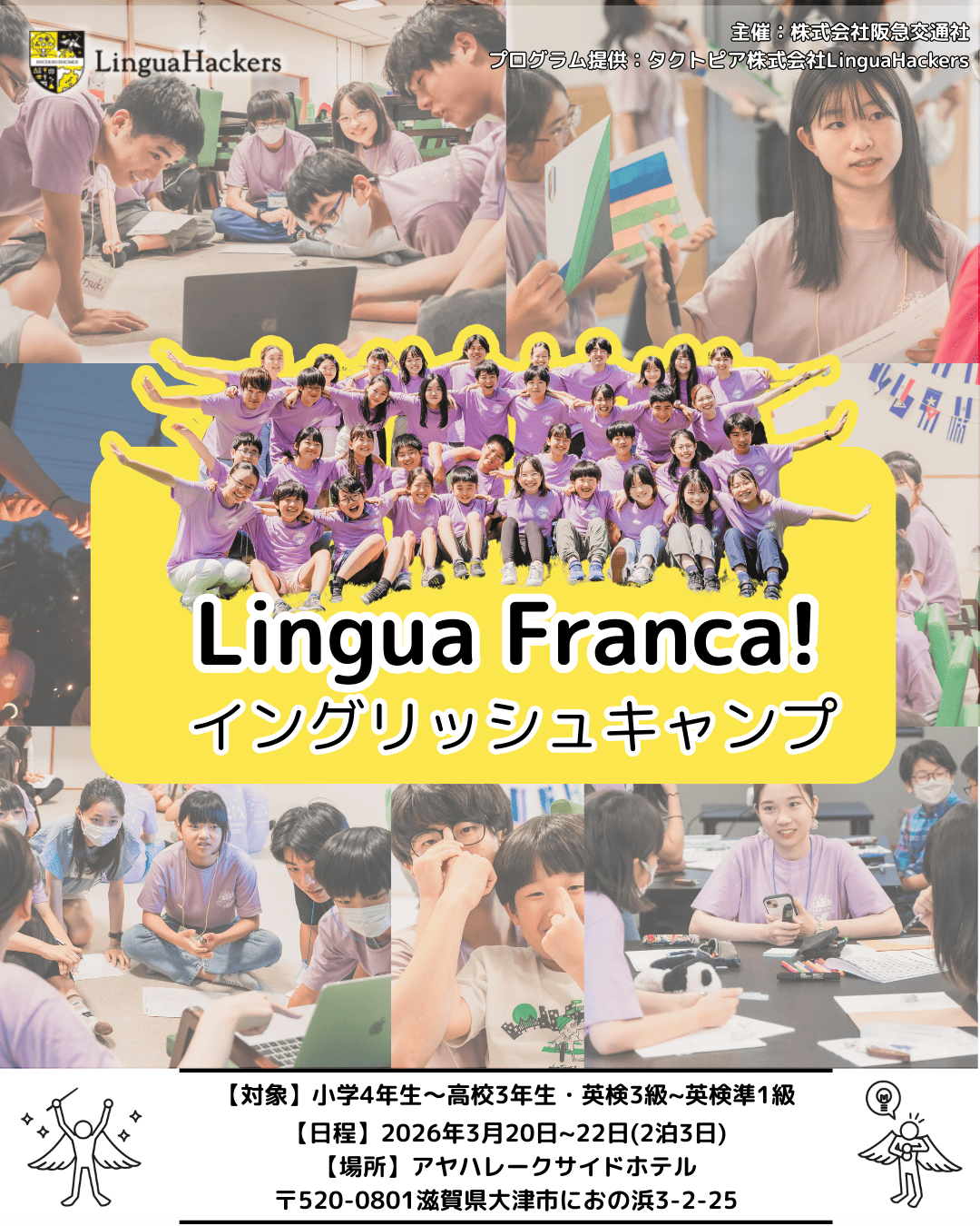LinguaFrancaキャンプは、英語を“共通語”として使いながら、世界の教養を探究する3日間の実践型英語キャンプです。