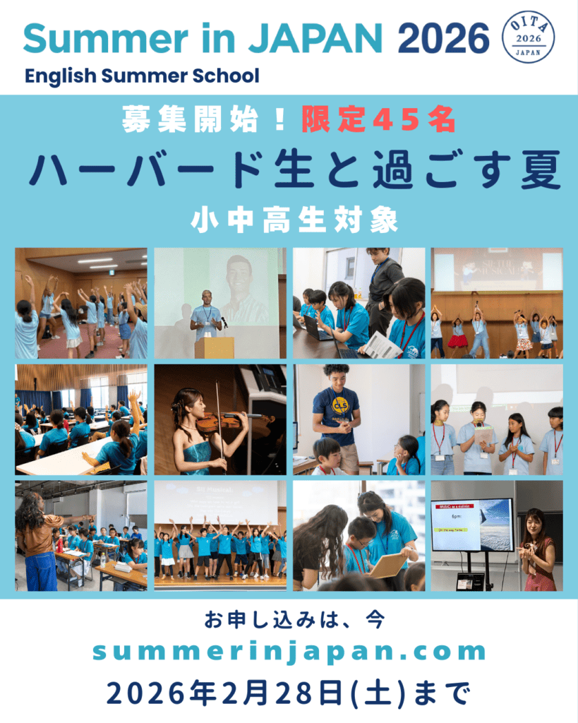 14年の信頼と実績。大分市にて、小中高生がハーバード生から直接指導を受ける特別な夏の8日間。