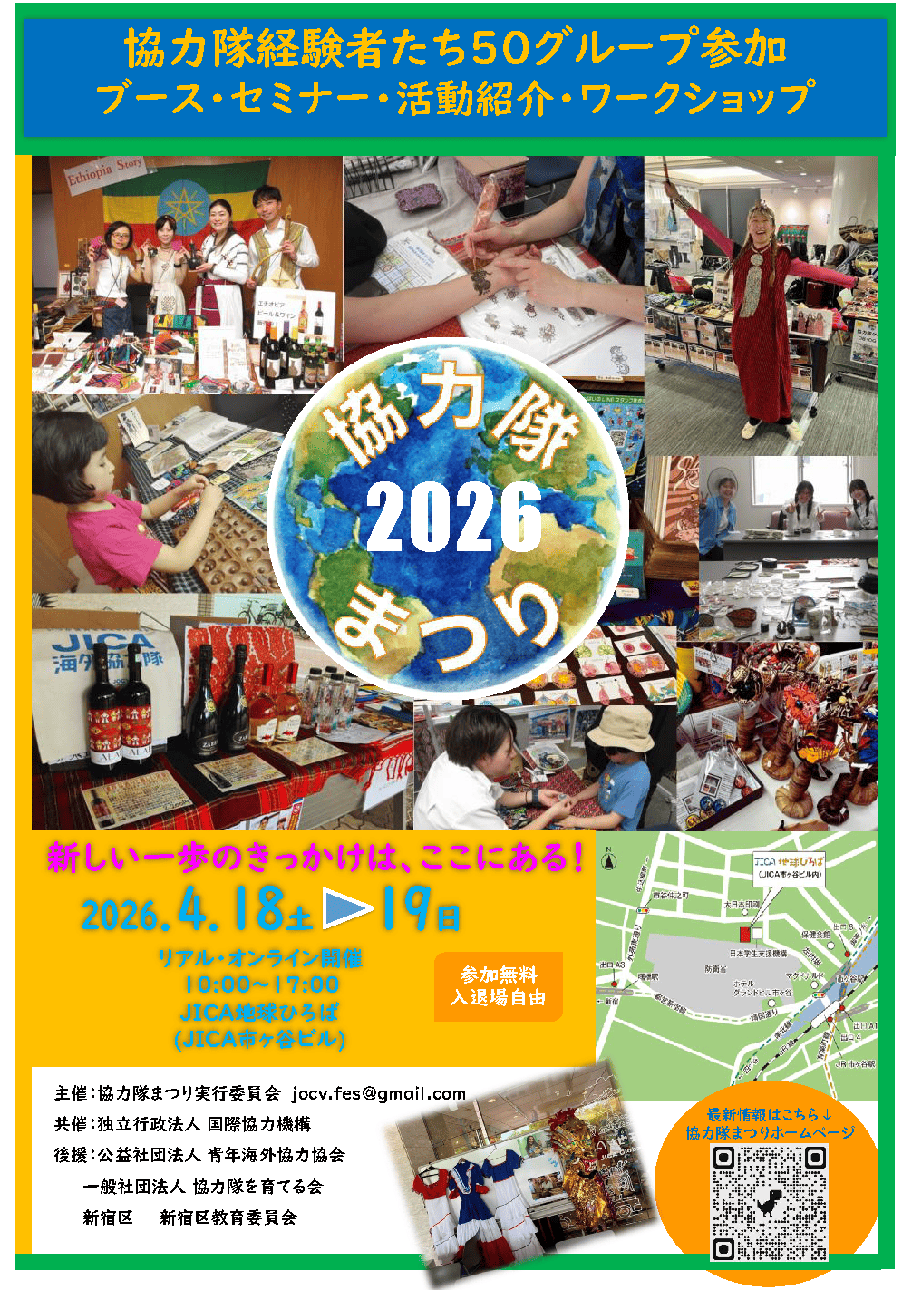 JICA海外協力隊を広く一般の方々に身近に感じ、さらに国際協力に興味を持ってもらうことを目的として、「協力隊まつり」をリアル・オンライン開催します。