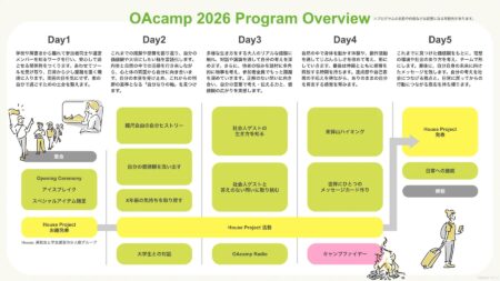 OAcampで出会う仲間たちとの交流は、高校生にとって、今までになかった視点をもたらしてくれるはずです。