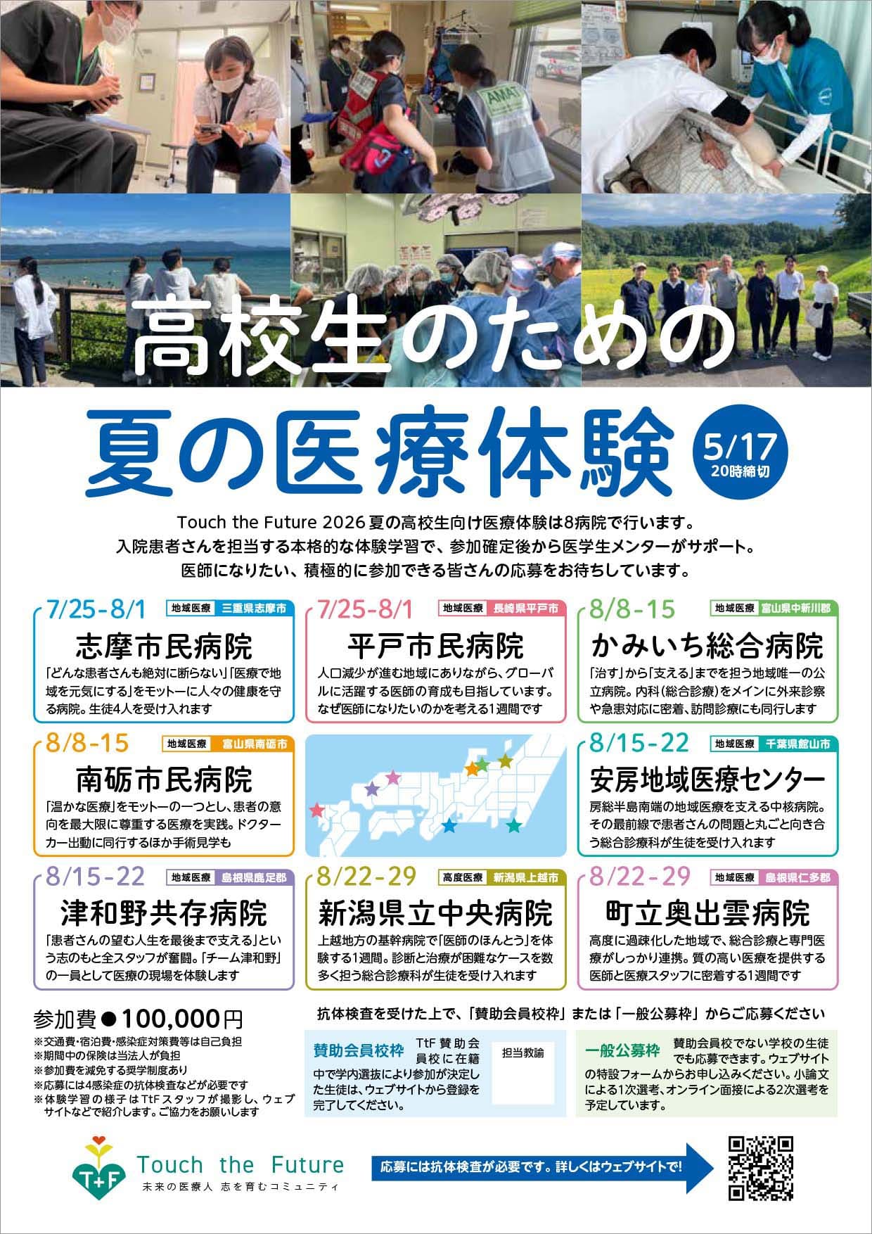 2026春及び夏の医療体験学習に参加した生徒が日本地域医療学会 第5回学術集会(11/1、広島県呉市)で発表できるよう、学会と協議を進めています。